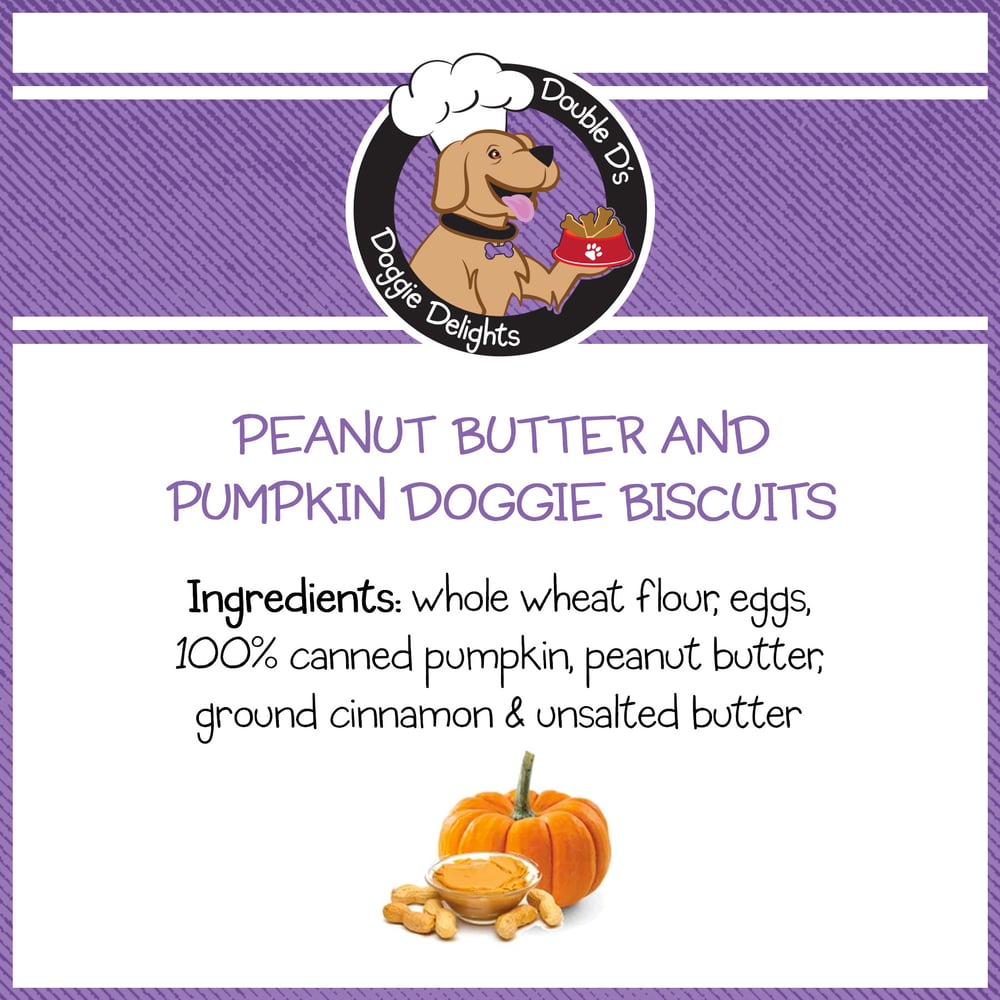 Ingredients: whole wheat flour, eggs, 100% canned pumpkin, peanut butter, ground cinnamon, sale & unsalted butter